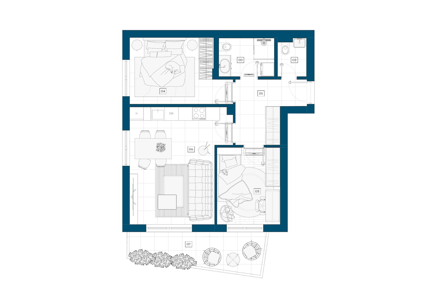 Svaki stan projektiran je tako da pruži maksimalnu privatnost, obilje prirodne svjetlosti i pogled na more koji svaki dan pretvara u doživljaj.